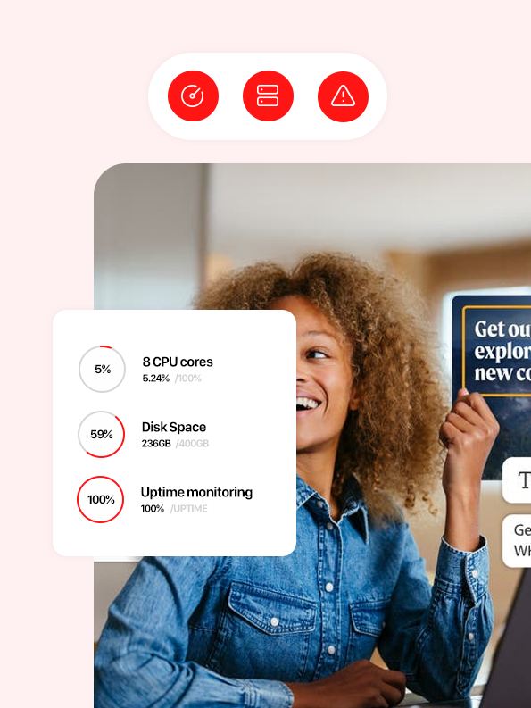 Don't let technical issues hold back your success. Our hosting is specifically designed for customers who want to focus on growing their business, not managing servers.